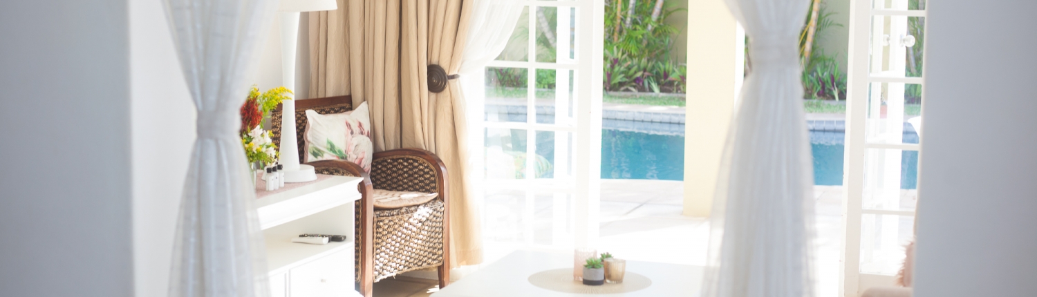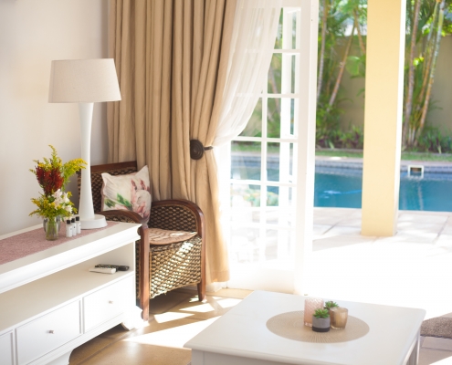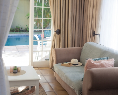 Golden Dawn has a spacious bedroom and separate lounge with French doors opening up onto the pool area giving you direct external access to your room.