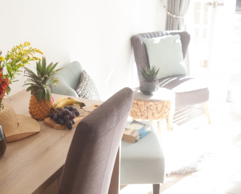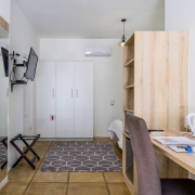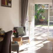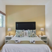 Your private access directly off the pool area takes you into a spacious, light, and airy entrance hall, beautifully furnished with comfortable seating and desk, and leads to the superior sized room with queen size bed.