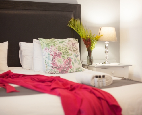 This suite offers a private entrance through the added luxury of its own terrace to further extend your personal space. Step into the elegant lounge area which includes a large sleeper couch (converts to a bed for children under 12). The bedroom leads off the lounge and has a king-size bed and spacious, chic en-suite bathroom.